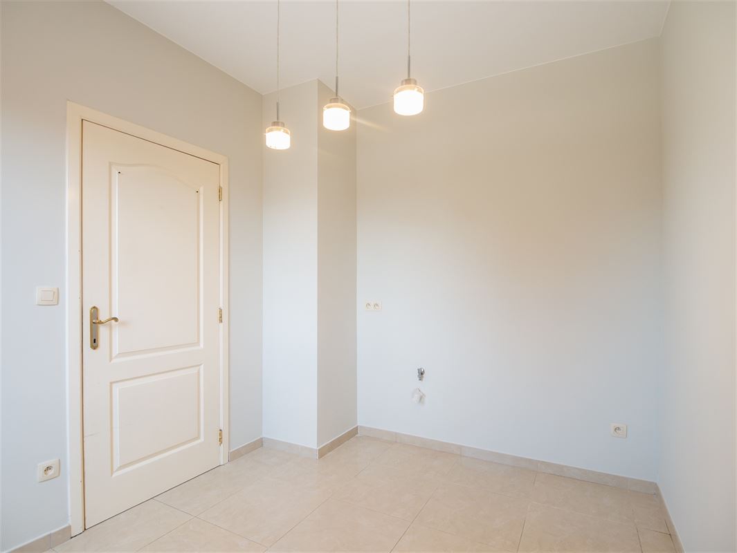 De inkomhal is voorzien van een kastenruimte/vestiaire en een apart toilet. De ruime L-vormige leefruimte sluit naadloos aan bij de open, geïnstalleerde keuken. Via de keuken heeft u toegang tot het zuidwest georiënteerde terras, evenals een ruime berging die tevens als extra bureau of (hobby)kamer kan dienen.